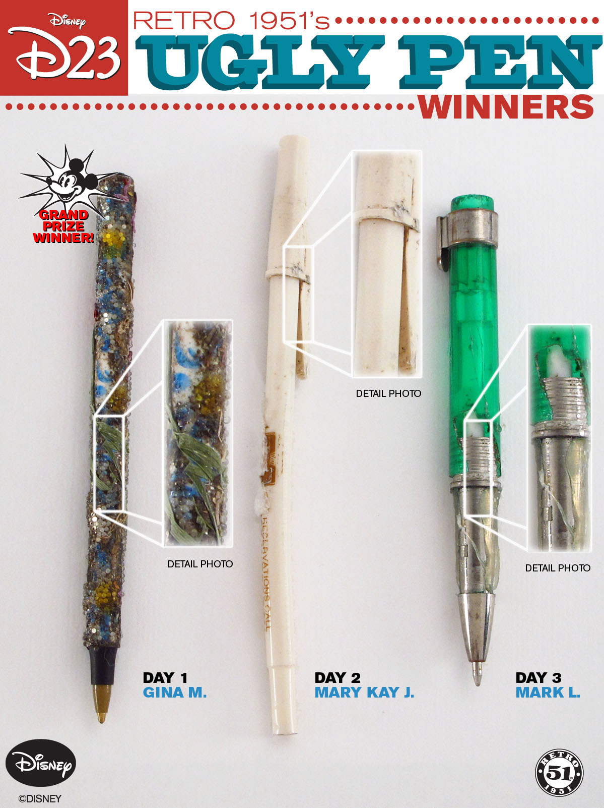 We had a great time at this year’s Disney D23 Expo! In addition to mixing and mingling at the biggest event in the world for Disney enthusiasts, we also held one of our best contests yet, the Retro 51 Ugly Pen Contest!