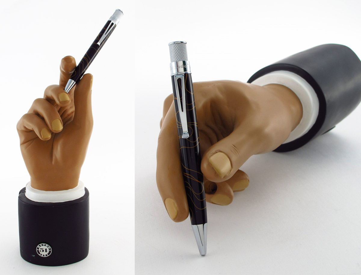 – Take a photo of your hand holding any writing instrument produced by Retro 51 pen (Harley-Davidson and Disney included)