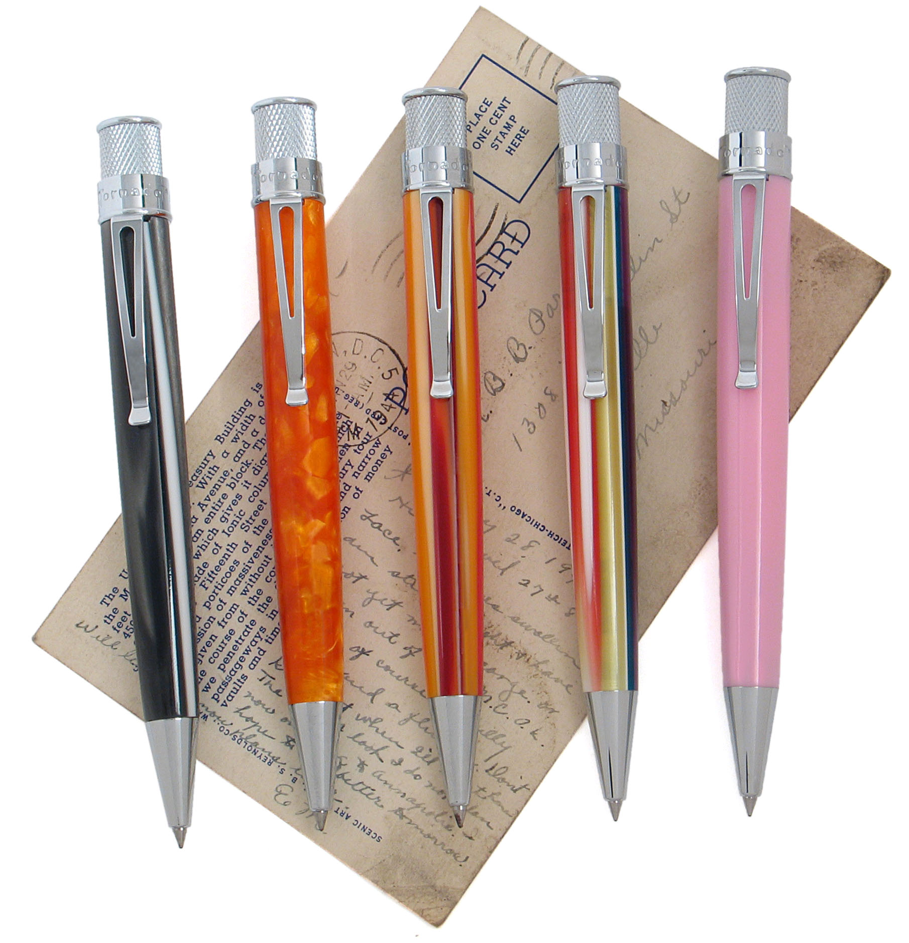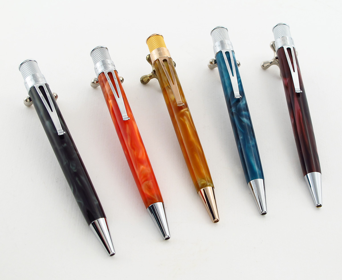 They are elegant in their simplicity.  The Tornadoes just feel good in my hand, especially the heavier ones.  I like the Retro look and feel and the creativity shown by Retro in designing their products, and that is across the board.  They are also very well made and last forever if you treat them well.  I have become particularly fond of the acrylics over the years.  The Sundance, Spumoni, Smoke, Camel Maize, Amber Blaze, Prairie Blue, Purple Storm, Boeing, et al, are all beautiful pens.  The new Calico and Marlin are a wonderful continuation of that fine tradition of acrylics.